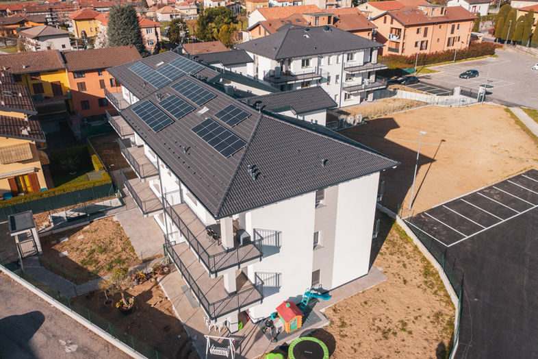 Ogni appartamento della residenza, ha a disposizione ampi spazi esterni come terrazzi o giardini privati, oltre a impianti per elevate prestazioni energetiche.
